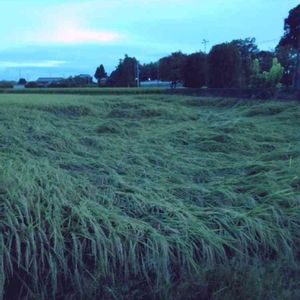 実家のお米が😱…… 台風の影響で、毎日のようにゲリラ豪雨があり、稲刈り前の稲が😱💦倒れてしまいました。水も溜まり稲穂が水について😭芽がでてしまうかも… 心配です😆