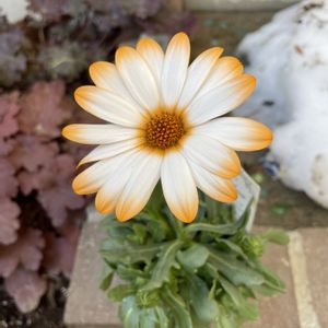 こんばんは! いつもありがとうございます😊 今日も暖かい1日でしたよ。朝はまだ霜で真っ白なりますが、お花にとっては心地良い日が続いてるのかな~って思うと僕も嬉しくなります😊 今日はディモルフォセカ パステリーナの寄せ植えです。 毎回もう買わないって決めてるのにホムセン覗いたら、こんなに可愛い子と出会ってしまって😅💦 黄色と悩みましたが、オレンジをお迎えしました。picが下手なので良さが半減してますが、ホント可愛い花色ですよ!オススメです😆 買ってあったリーフといつも入れてしまうアリッサムを使って何時もながらワンパターンですが、春らしい感じに仕上がったかな? 蕾もたくさん控えてるのでこれからが楽しみです🙌