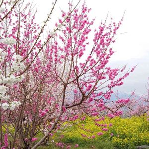 ここは山梨県笛吹市中央自動車道20号下り釈迦堂PAから入れる、桃の果樹園。 菜の花と桃と菜の花と桃と菜の花と桃と
