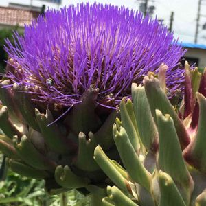 💜 アーティチョーク キク科 チョウセンアザミ属 和名:チョウセンアザミ 「今日のお花」より 6/16にpicさせて頂きましたがその時に同時に撮影した一枚です 若い蕾が食用として利用される ほのかな甘みとホクホクした食感があります。食物繊維はゴボウの1.5倍近い量を含んでいるそうです インドでは二日酔い防止に飲酒後お茶に混ぜて飲まれているそうです