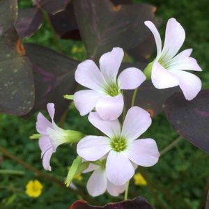 🌸 オキザリス・トリアングラリス カタバミ科 属 地上に茎をもたない多年生植物で塊状の根茎の地下部から出る長い葉柄で構成されている 全体が鱗片に覆われているそうです