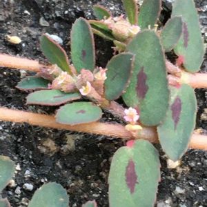 🌱コニシキソウ(小錦草) トウダイグサ科 ユーフォルビア属 別名:ユーフォルビア・マクロラタ 匍匐性の植物で地面に敷き物を広げるように成長する。葉の形は長楕円形で葉は対生、葉の中央に暗紫色の斑点がある 花は非常に小さく4枚の白い花弁が直ぐにピンクに色づく 茎を傷付けると白い乳汁が出る 23日に「ニシキソウ」をpicさせて頂きましたがどうしてもこちらの「コニシキソウ」が気になり、探してきました