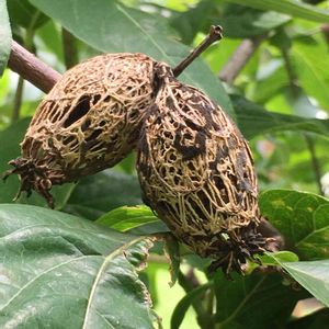 🥜 ロウバイの実 ロウバイ科 ロウバイ属 別名:カラウメ もう、すっかり実が枯れ落ちてこんな姿になってしまってました でも、芸術的ですよね~