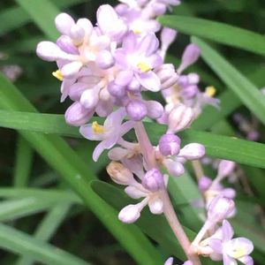 💜 ヤブラン(藪蘭) キジカクシ科 ヤブラン属 別名:リリオペ、サマームスカリ 「今日のお花」より 花は紫色の小さいもので、穂状に咲く 葉は細く、先は垂れるそうです