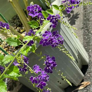 こんばんは⭐️ デュランタ宝塚です💙💜 今頃咲き始めました👀 3年目ですが、鉢植えで、 長く伸びたらカットして育てています。 暖冬のおかげで冬越しもベランダで できています😄 濃い紫のお花が可愛いです💜 皆様台風大丈夫でしたか? バラさんの葉っぱを洗う感じで シャワーして、今日は、夏剪定 しました😄 まだ終わってないけどまた数日中に。。 🏷️美しき青きドヨウ に参加させて下さいね🙏