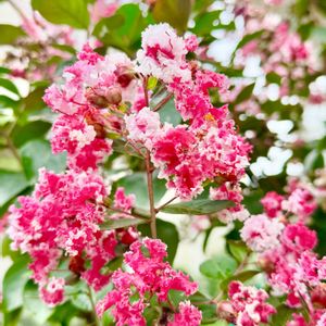 サルスベリ✨ この暑い中 元気いっぱいに咲いてます!街中でもあちこちに見かける鮮やかさ🌼 写真のピンクの他にも白・紫もいます☺️ 奥の夏祭り(白×濃ピンク)なぜか今年はほぼ濃ピンクに咲いてます💧
