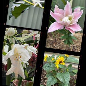 南の国の友人からのpicです。 ↖️左上 コーヒーの花☕️🤍🌿 ↙️左下 ブリスベンリリー🤍🌿 ↗️右上 八重咲きユリ💗🌿 ↘️右下 ミニヒマワリ🌻 今年はこの他マンゴー🥭の実がたわわに実っているようです。 🍋🌱🍋