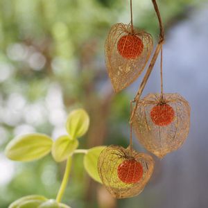 ✼ホウズキ ナス科ホウズキ属 透かしホウズキが 自然ドライに仕上がっています 𓐣 ᐝ𓐣 ᐝ𓐣 ᐝ 萼が網目状に乾燥したのですね キッチンの窓辺へ 吊り下げました🔴🔴❣ 🏷金曜キラキラ 参加させて下さい♬