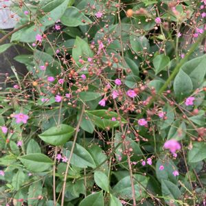 四ツ谷駅前の"スクワール麹町"の麹町大通り沿いに数十年前から生えている「ムラサキゴテン」にハート型の小さな花が咲いていた。