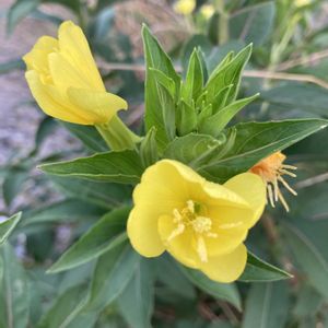 国道6号線沿いの空き地で咲いていた黄色い花。 検索結果は萎んだ花がオレンジ色なので「マツヨイグサ」。 北アメリカ原産の帰化植物なんだね。