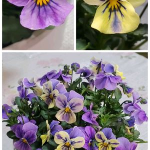 ゲブラ ナガトヨ ビオラ ミステリアスバニー&アマゾネス 花数が多くステムが長め💜🤍🩷ハンギングして見ました!