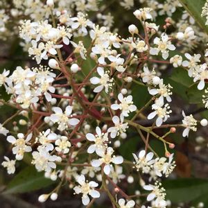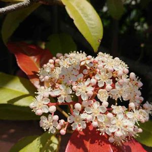 要黐の花 バラ科カナメモチ属 別名。レッドロビン、ベニカナメ 生け垣に植栽され、真っ赤な新芽が人気ですが、花もこんなに綺麗なんです。