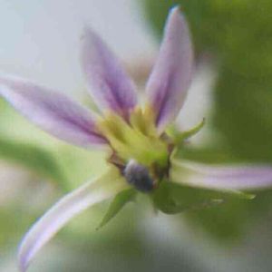 おはようございます🎵 気温17度❕ とても涼しい朝です🍀 今日も良い1日になります様に。。。💓 パープルクランベリー 一昨日、初めてお迎えしたパープルクランベリーさん✨お花がとっても小さくておよそ3ミリくらい❕接写でも上手に撮りきれす、マクロレンズを使いました😃 変わった形のお花ですがとても繊細でお色も素敵✨可愛いです❤ 既に赤紫の実が1つ淡い黄緑の実が数個ついています🎵 つる性で葉の形も可愛く、これからとても楽しみです💓💕❤