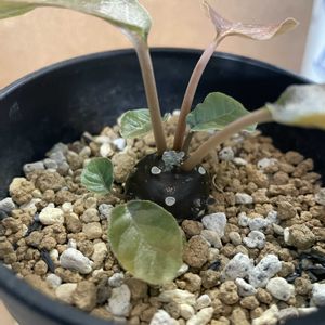 ドルステニア・ラブラニーをいただいた記念📸 でもこの種は夏型、いまは休眠中…ということでお休みエリアに直行するのでした……春までおやすみ! キモいチコリータって呼んでゴメンナサイ