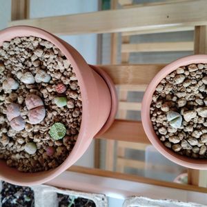 知識が全く無い状態なのに安かったのでフリマで購入してしまったリトープス。夏が休眠とは梅雨知らず… 表面に細かい赤玉+霧吹きで1ヶ月に1回程度の水やりと教わりその通りにしています。 ネットで扇風機の風でもいいから風通しが必要としり首振りで扇風機かけて育てていますが発根していない子ばかりで夏が終わったらどう育てていくかも不明。 でも、リトープス欲しかったの…