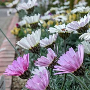 ~2021年~ 今年初めて作る寄せ植え🏡🌷 小さなお庭に ピンクと水色の蝶々さんが 遊びに来たよ🌸🧚♂️ 白いベンチに座って ティータイムしようかな🍰☕️🌷 エントランスの扉を開けて Welcome to open the door ✨