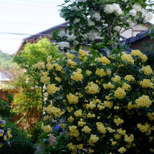 モッコウバラ(黄色)が‥ 満開です🌼 雨予報なので‥ 朝一で撮りました😅 今年は花がもりもり‥ 一段と華やかです😊