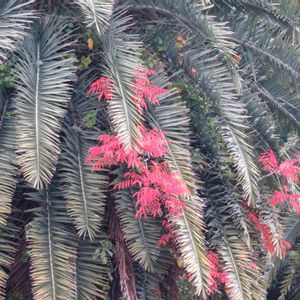 児玉美術館からの帰り道 車の中から📸 街路樹のビロウに赤い葉が🍁 シダやハゼや色々な植物が寄生しています! 紅葉するハゼの葉はナタリーヤシの実のように見えました♪♪