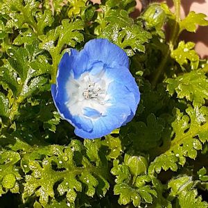 おはようございます🌸 早朝から激しい☔ 咲きかけていたネモフィラ 昨年の花から種を採って やっと咲いた最初の花🌸😊