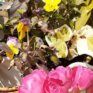 おはようございます🌸 霜で部分的に枯れたポリゴナム、鉢と鉢の間で着々と増えています