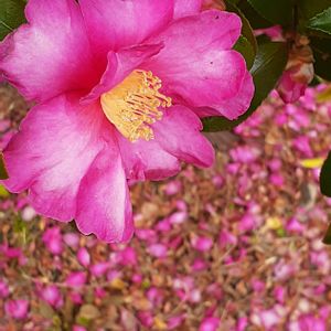 おはようございます🌸 公園の花も少ない時期に華やかな山茶花 散った花びらも