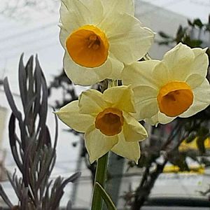 おはようございます🌼 公園の水仙 🐕散歩中に山茶花にメジロが沢山いて、可愛いな~と上を見ながら歩いていたら 電柱横の斜めのポールにぶつかりました😵 反省😖