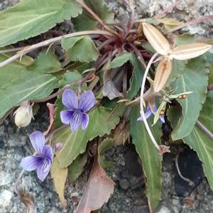 おはようございます🌸 みぞれのような❄️が降る寒い朝です 🐶散歩ですみれを石壁にみつけました😄 可憐ですね ノジスミレ?