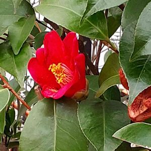 おはようございます🌸 仕事帰りに見つけた椿 まだ一輪
