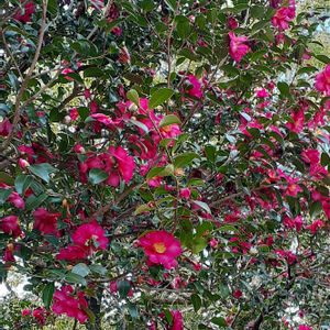 おはようございます🌸 晴れた成人の日🌞 おめでとうございます💐 神社の立派な山茶花 沢山のメジロが蜜を吸っていました🐦 スマホでは撮れなかったわ🌸