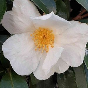 おはようございます🌸 散歩道で見つけた山茶花 葉が斑入り?病気?