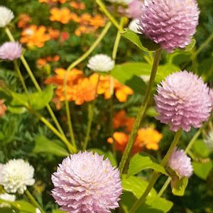 こんにちは🌸 千日紅とマリーゴールド 公園にて
