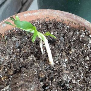 庭の片付けをしていたら何やら芽が🌱 大きな種を割って伸びています 記憶を辿ってみると、だいぶ前に食べた桃🍑の種を埋めたような… 大きくなるかな?