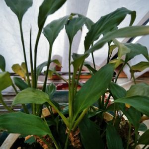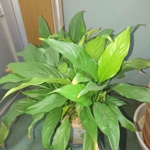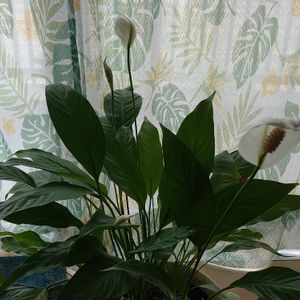 部屋にいる時間が長いと やはり緑があるとホッとしますね❤️ 友人から 株分けしてもらったスパシフィラム もう10年くらいかな😃 艶々の葉は ときどき ふきふき✨💍✨ お花は ここ数年 お目にかかってないな~?どうした?