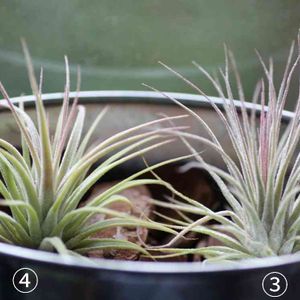100均のチランジア🌿 ハリシーとの交配❔と思われるものを集めてみました😊 ①札はチランジア 葉が固くて分厚い ②札はチランジア 巷で話題の❔『黒いハリシー』だったもの🌿緑色に戻ってしまったので明るいところに置いてまた黒くなるのか検証中🔎 ③札はハリシー 本物ハリシー❔ 葉が折れやすく繊細💦 ④札はチランジア 『黒いハリシー』だったもの🌿 有茎種の様に育っていて面白い👀 こんなにどうすんの❔というハナシですが、ついつい買っちゃう🤣 可愛い子たちです🌱🌱🌱🌱