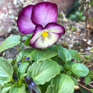 虹色スミレ スイートラブ 11月カインズの処分品が開花 かなりの強風🌪に耐えて咲いてます