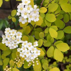黄金葉コデマリ・ゴールドファウンテン 咲き始めました😍💕💕 我が家のカラーリーフ達が 次々とお目覚め🥰