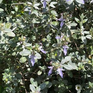 ツリージャーマンダー スペイン原産🇪🇸 シソ科ニガクサ属の常緑低木 葉の色に惹かれて植えて冬も楽しめます 年々大きくなりザクザク剪定✂️ だけどしっかり咲いてくれました😍