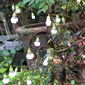 ハーマニアコッコカーパ アオイ科南アフリカ原産の常緑多年草 去年の11月末にHCの処分品でお迎え 室内で冬越しして戸外へ葉の色が緑から 茶色になったのは気温のせい❓😅 初めて見るちっちゃくて可愛い白花😍 たくさん咲き始めました💕