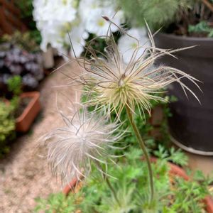 西洋オキナグサ𓂃◌𓈒𓐍 右が紫色、左が白の花が咲いていたの。 今年は種をとるぞჱ̒ ー̀֊ー́ )✧