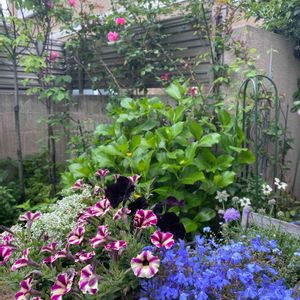 庭のバラがすごい事になって来ました① バラ🌹は「パレード」名前からしてたくさん咲きそう!と思って買いました。 クレマチスのクレビレア・ビューティも咲き始めました! 手前はペチュニアやロベリア。