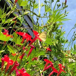 ルコウソウの花 車庫の上でとっちらかってます😅 💙💙💛❤️❤️ 秋が進み ほっこりカワイイ赤ですヽ(^0^)ノ