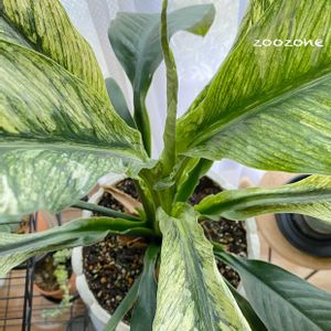 嬉しいお知らせ✨✨ スパティフィラム センセーションに7枚目の斑入りのドリルが‼️ 緑の葉より多くなりました🙌 もしかして、全部斑入りになるかも💖