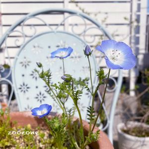 来た〜❣️第2弾!! ①零れ種からの冬越し成功したネモフィラさん、遂に!咲き始めました💖 なんだか、去年より花のサイズが大きいかも👀 ②ガーデンシクラメンさん、1ヶ月以上、葉の下に隠れ続けていた蕾が開花して、次の蕾も次々と上がってきています!!日中は初夏の気候だけど大丈夫かな⁇