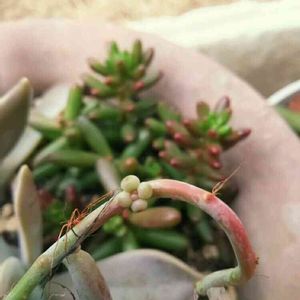 🎄本日のpickup❣️🎄 今日は朝からずっと雨☔️ 多肉ちゃん達もお日様が無くて残念そうです😅 我が家で1番暴れん坊の【朧月】さん。 暴れまくっているだけかと思っていたらピンクの可愛い赤ちゃんが顔を出してきました😍 折れちゃった所から2箇所も❣️ やはり【朧月】は強いコでした(๑>◡<๑)