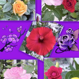 🌹今日の庭🪴推し華…色々お花居るけど…優勢はやっぱハイビスカス🌺と薔薇🌹ちゃんですね♪(๑ᴖ◡ᴖ๑)♪ 秋っぽくコラージュ🍂したつもりなんけど…なんか、花札🎴みたいになってしもた😅 色鮮やかに…秋風feel😍