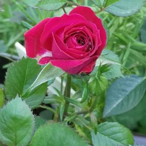ミニバラ、ボルドーコルダーナ 濃い赤です。うどんこ病が凄かったけど手作りスプレー挑戦してみたら、とても良い感じでした。