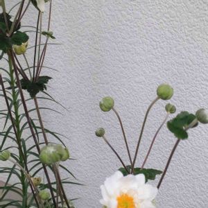 白い シュウメイギクが 咲きました( ◠‿◠ ) 毎年忘れず咲いてくれて ありがとうね
