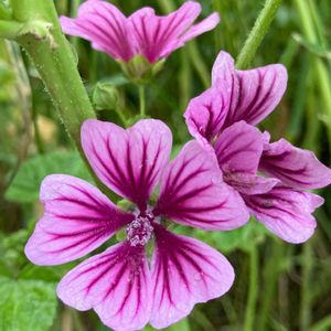 道端に咲くゼニアオイの花、こぼれ種が飛んできたのかたくさん咲いています。