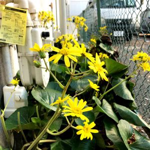 いつも通る道 子供の頃塾のおばちゃん先生と呼んでいた塾長の奥さんが路傍の石の話をしてくれてつわぶきの花の名を覚えた気がする。 でも大人になるまで花は見たことはなかったと思うほど気づいていなかった。 実は実家の庭にも咲いていたという。 昭和の花といった感じ。