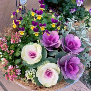 おはようございます😊 葉牡丹を前に出した寄せ植えです。 葉牡丹を使うと一気にお正月ぽくなりますね〜💗 今日も良い一日になりますように🍀